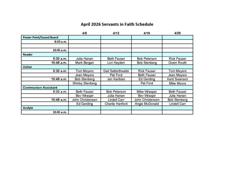 Get Involved Servants In Faith Trash Pick-up Schedule Weekly schedules for trash pick-up for March 2026 through March 2027 can be found in link below. Download the Schedule Counters Schedule Weekly schedules for the counters for January 2026 through June 2026 can be found in link below. Download the Schedule